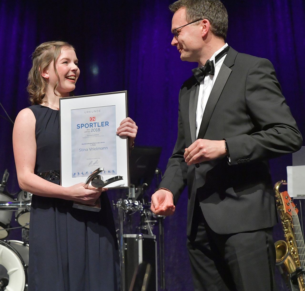 In diesem Jahr stand Stina Vrielmann mit zur Wahl im Bereich der Nachwuchssportler des Jahres 2018. Alle GN-Leser und interessierte konnte bei der Abstimmung mitmachen und den Sportlern ihr Stimme geben. An diesem Abend wurde dann auf der Bühne das Ergebnis bekannt gegeben.