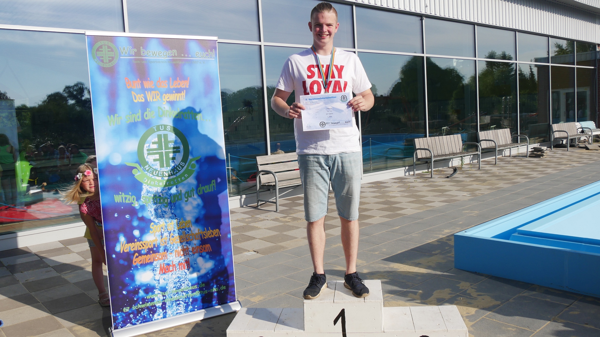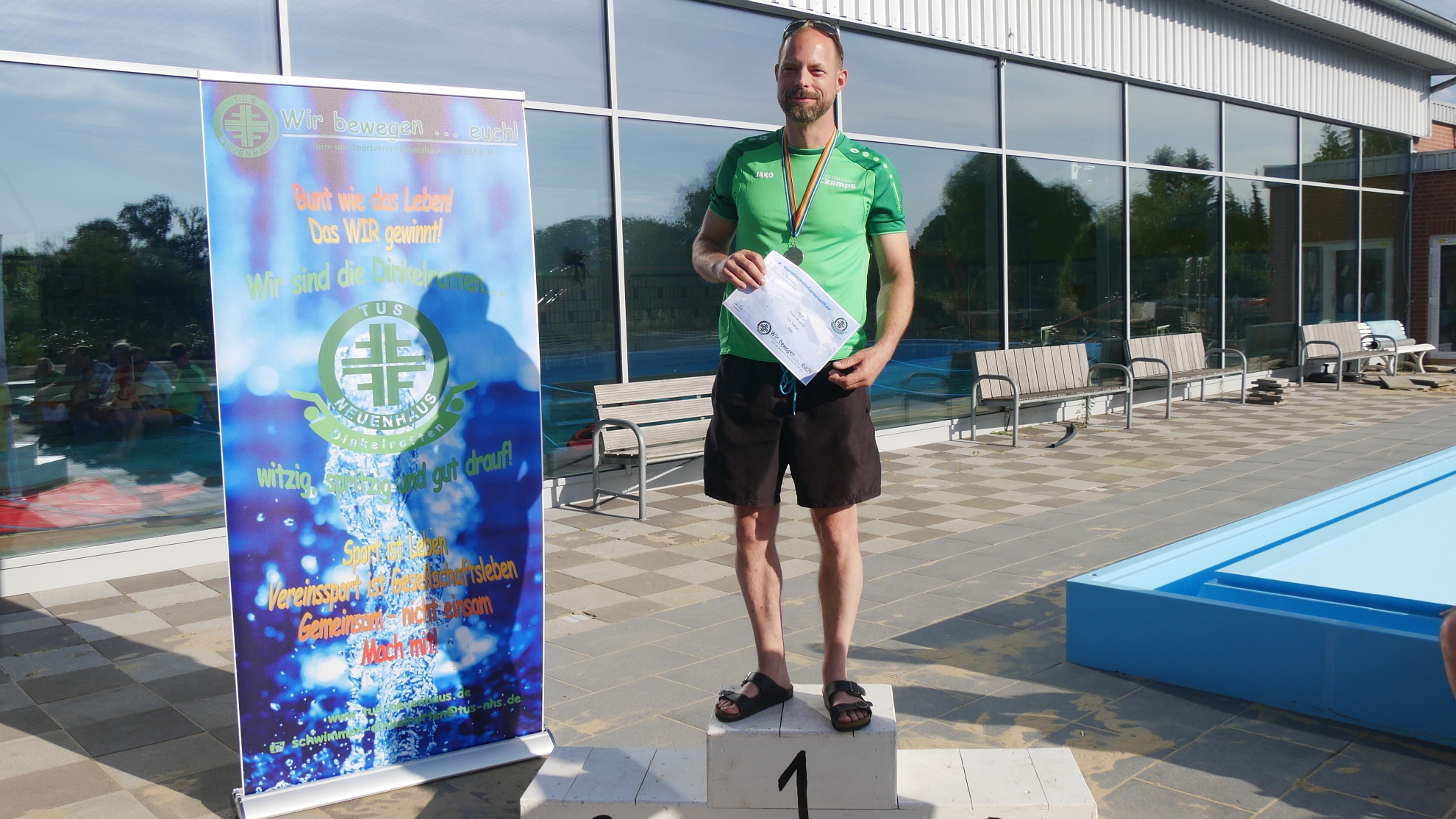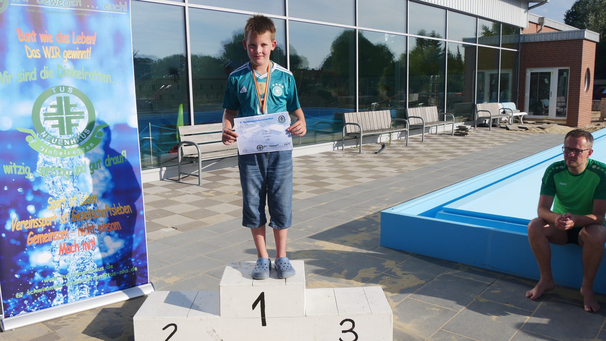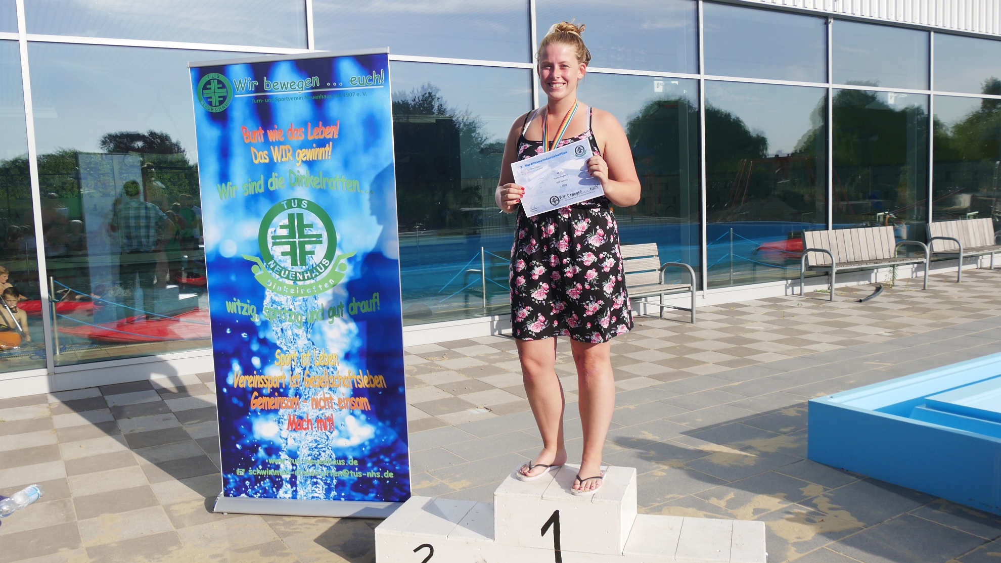 Am letzten Sonntag vor den Sommerferien war es wieder soweit, die Vereinsmeisterschaften mit kleinem Saisonabschluss standen an. Bei Kaffee und Kuchen, begleitet von bestem Wetter, konnten wir von 13 bis 18 Uhr im Dinkelbad unsere Bahnen ziehen, Juxstaffel schwimmen und ein Gummitier erobern. Mit viel Unterstützung der Eltern, die als Kuchenspender, Kampfrichter, Auswerter und helfende Hände überall mit angepackt haben, konnten wir eine erfolgreiche Veranstaltung über die Bühne bringen.