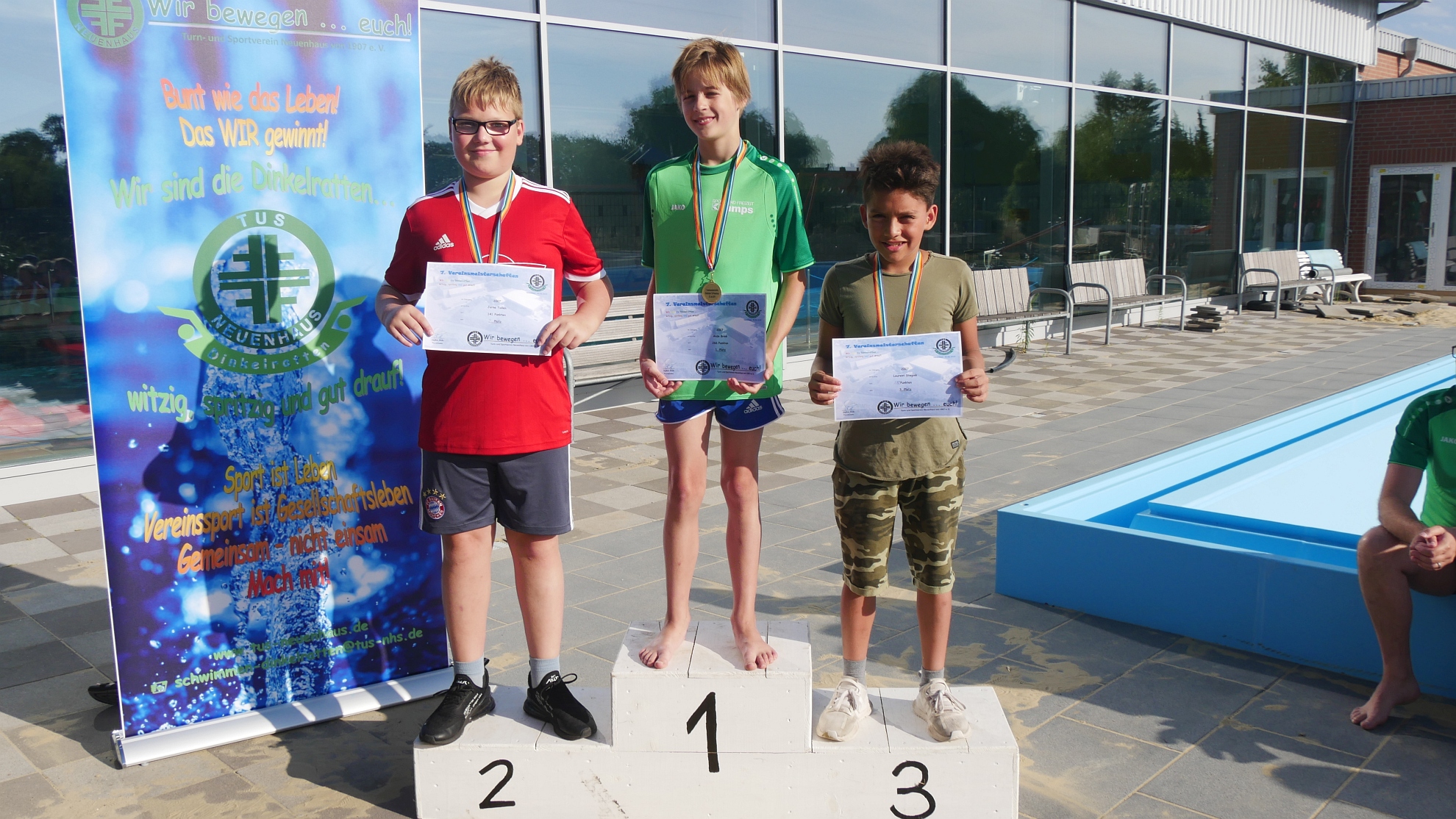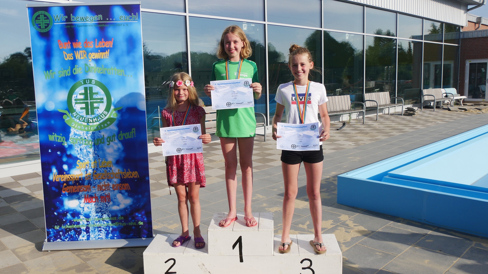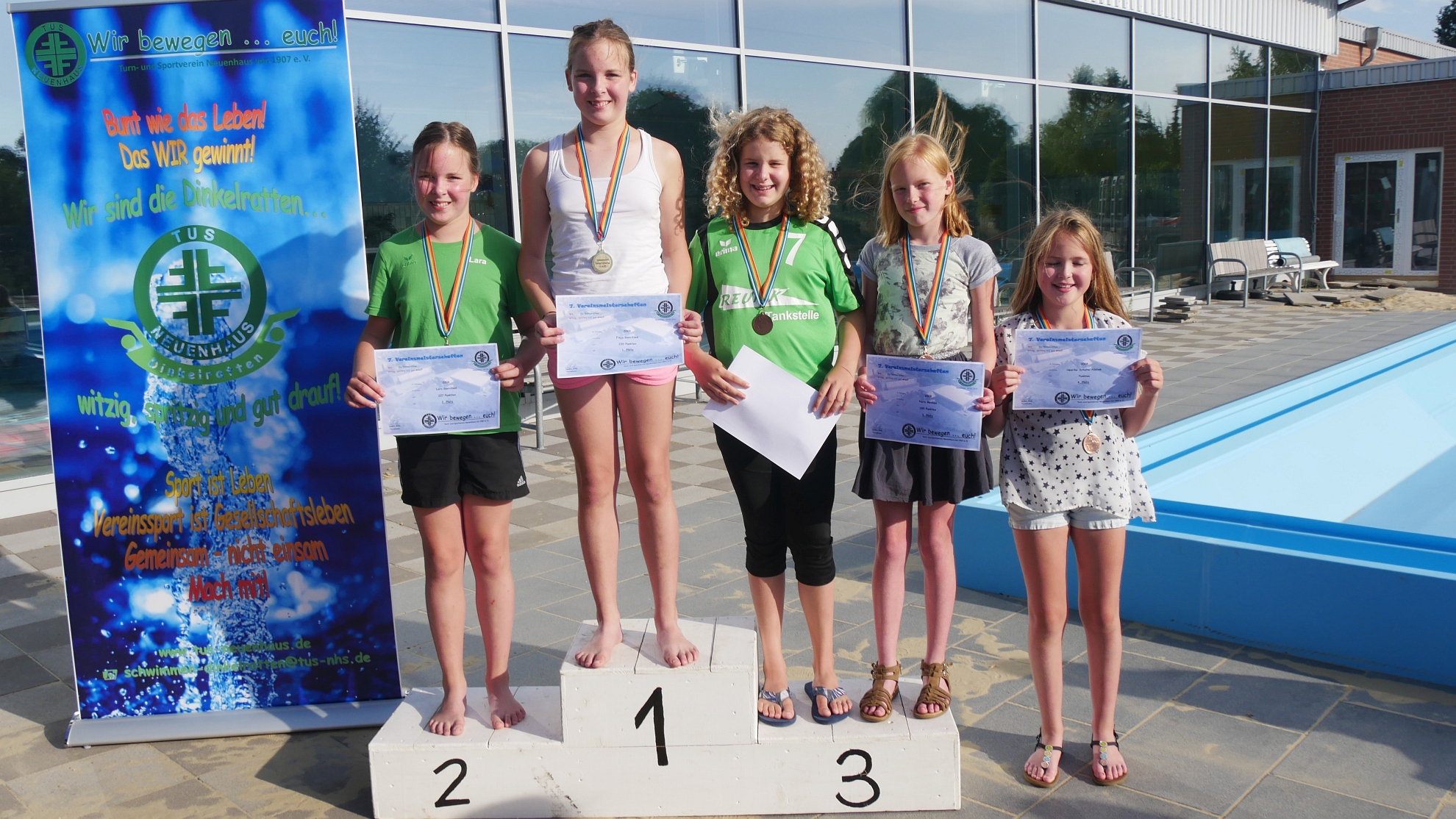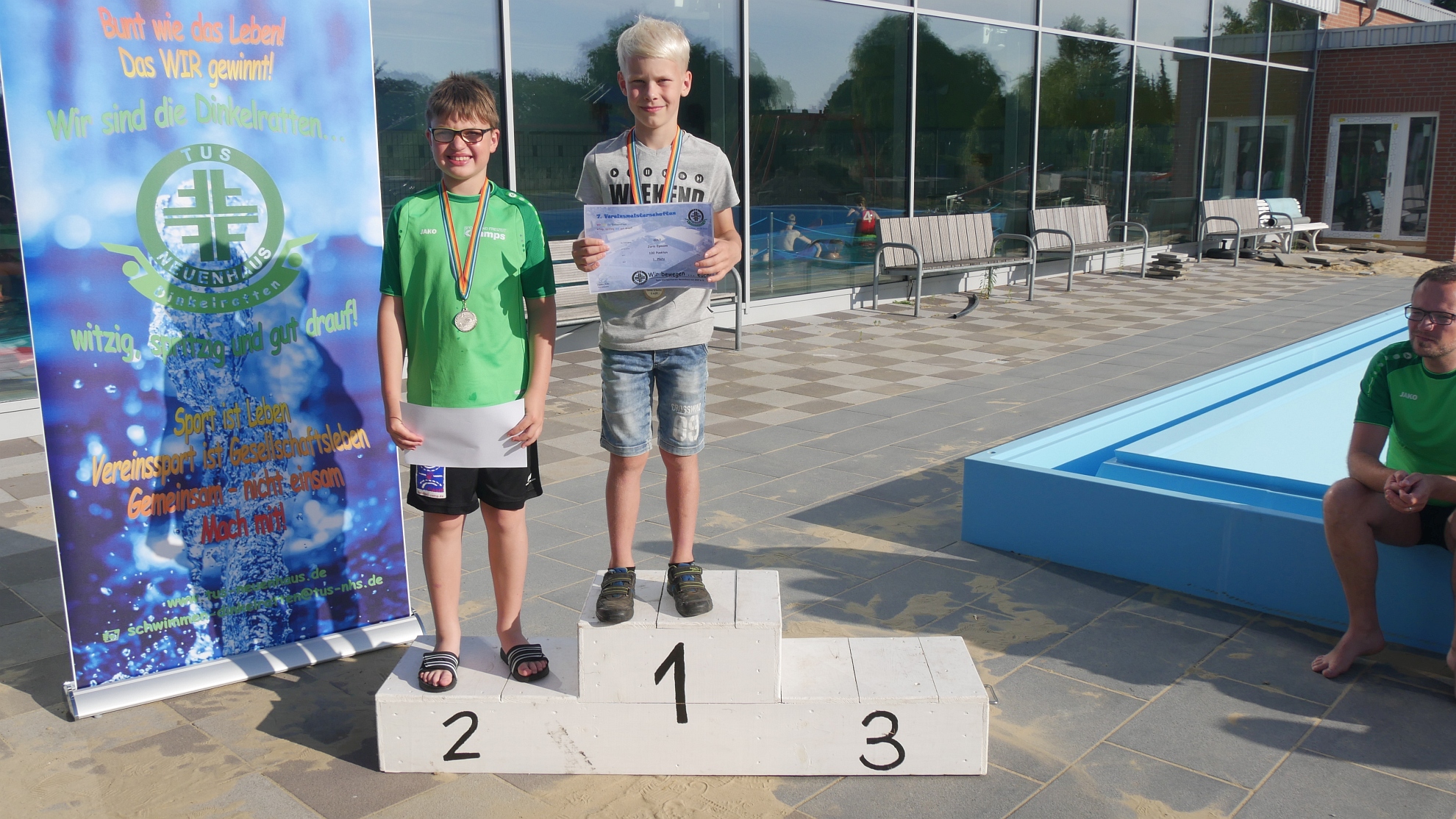Am letzten Sonntag vor den Sommerferien war es wieder soweit, die Vereinsmeisterschaften mit kleinem Saisonabschluss standen an. Bei Kaffee und Kuchen, begleitet von bestem Wetter, konnten wir von 13 bis 18 Uhr im Dinkelbad unsere Bahnen ziehen, Juxstaffel schwimmen und ein Gummitier erobern. Mit viel Unterstützung der Eltern, die als Kuchenspender, Kampfrichter, Auswerter und helfende Hände überall mit angepackt haben, konnten wir eine erfolgreiche Veranstaltung über die Bühne bringen.