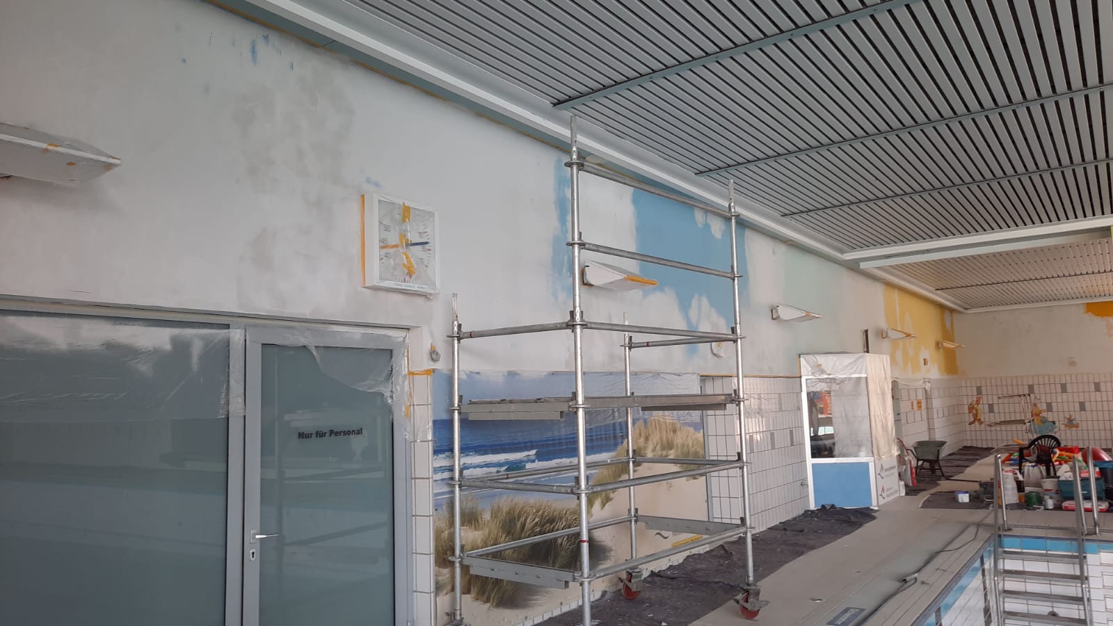 Wie jedes Jahr um die Ostertage und in den Osterferien wird auch in diesem Jahr das Dinkelbad komplett kontrolliert, ausgebessert und es finden größere Bauarbeiten statt. In diesem Jahr ist als größeres geplant, die Lüfutungsanlage zu erneuern. Und natürlich muss das Außenbecken wieder fit für die kommende Saison gemacht werden - die hoffentlich bald starten kann!