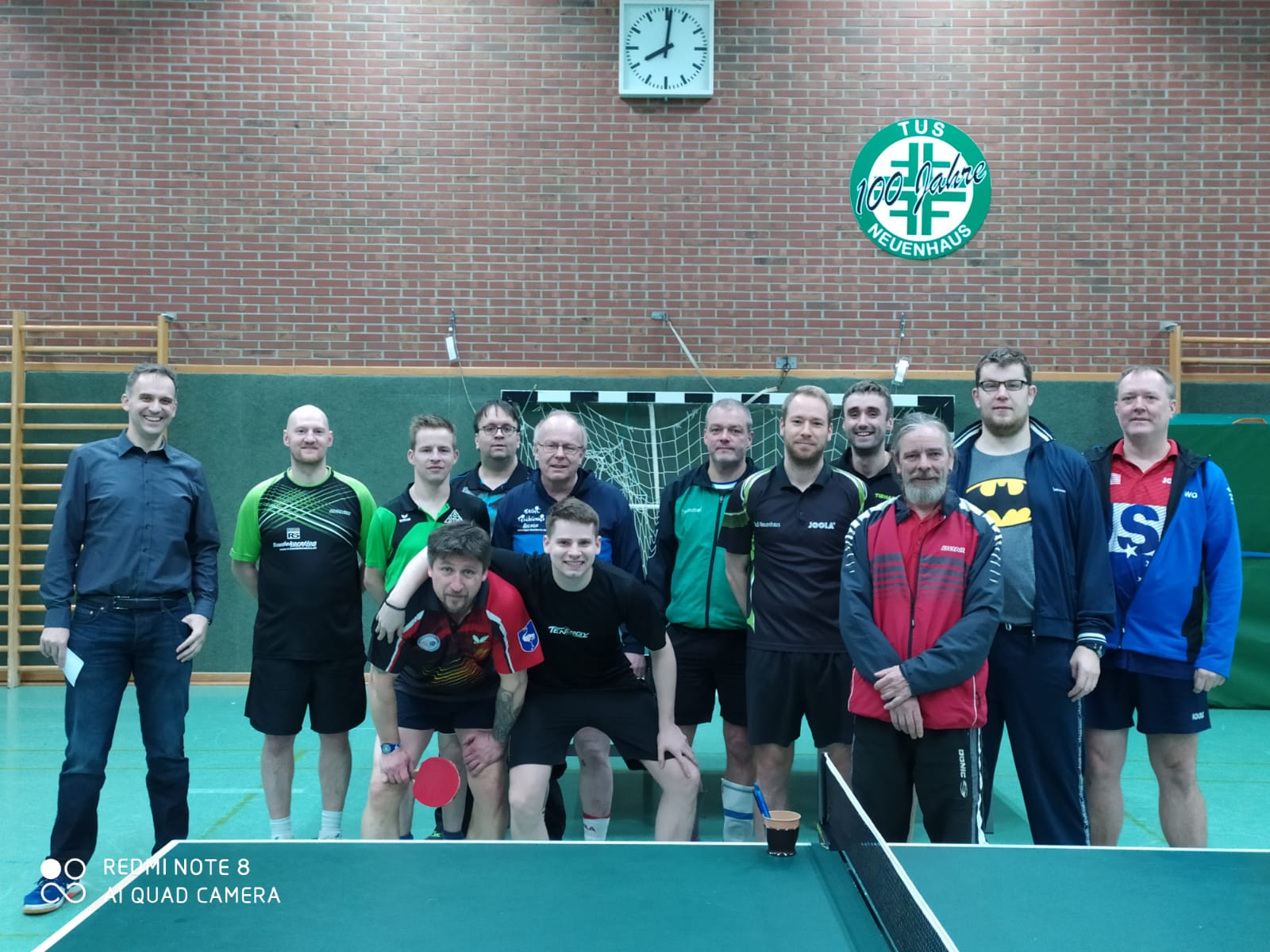 Besonders erwähnenswert war auch die Anwesenheit eines Tischtennisweltmeisters aus dem Jahr 2019, nämlich vom SV Vorwärts Nordhorn dem Doppel-Weltmeister der Tischtennis-Parkinson WM, Thorsten Boomhuis. Unter den Teilnehmern waren auch gleich sechs Mitglieder des austragenden Vereins, was zeigt, dass in Neuenhaus gerne Tischtennis gespielt wird und diese Turnierform guten Anklang findet. Obwohl der Verein nur rund 30 aktive Mitglieder zählt (zwei Herrenteams und eine Jugendmannschaft), wird hier seit über 44 Jahren regelmäßig Tischtennis gespielt. Größter Erfolg des TuS Neuenhaus war neben dem Aufstieg in die 1. Bezirksklasse wohl der Bezirkspokalsieg in der Herren-D-Spielklasse im Jahr 2009.