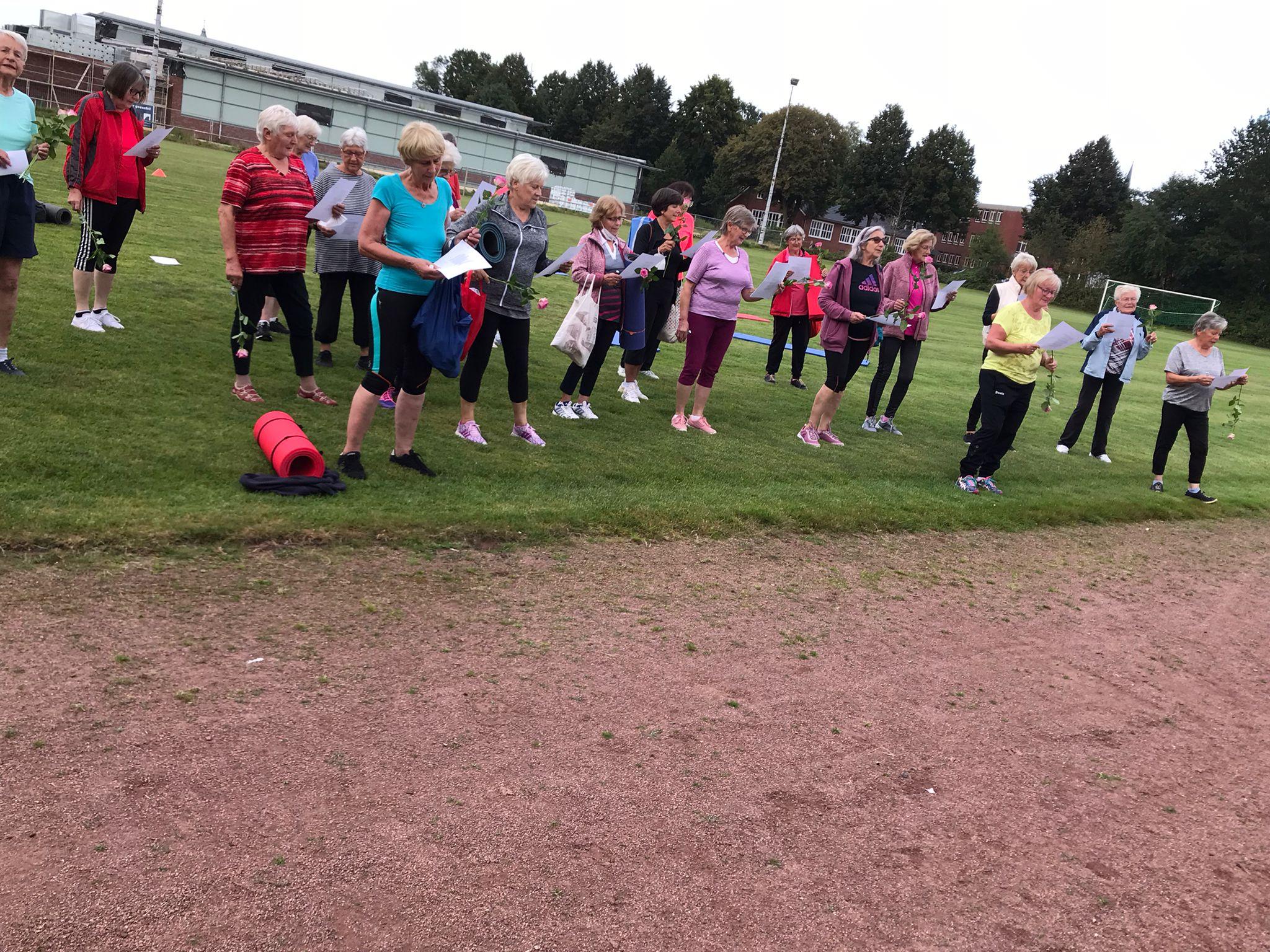 Endlich konnten wir im Mai/Juni 2021 draußen auf dem Sportplatz wieder Gymnastik anbieten. Die beiden Gruppen 65+ und die Seniorinnen Freitag haben das Angebot mit Freuden angenommen um ihre körperliche Fitness zu erhalten. In der Gemeinschaft und Begegnung macht die Gymnastik deutlich mehr Spaß als isoliert zu Hause zu trainieren, war der Tenor.