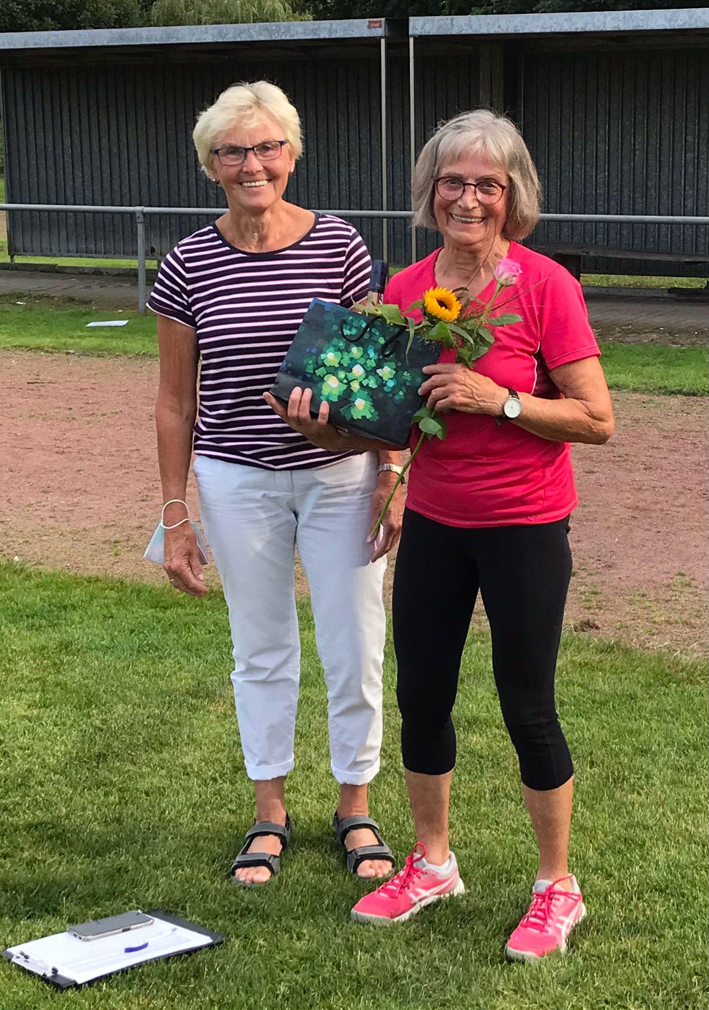 Am 06. September 2021 – nach den Sommerferien – war die Gruppe 65+ sehr stark vertreten. Es gab eine Riesen- Überraschung für Gerhilde. Die Gruppe gratulierte Gerhilde zum 80. Geburtstag mit einem Geburtstagsständchen, jede Teilnehmerin schenkte eine Rose, so dass sich am Ende ein dicker Strauß von etwa 30 Blüten entwickelte. Zwei Uelsen-Gutscheine aus der Freud- und Leidkasse, Pralinen und eine Flasche Seco rundeten die Präsente ab.