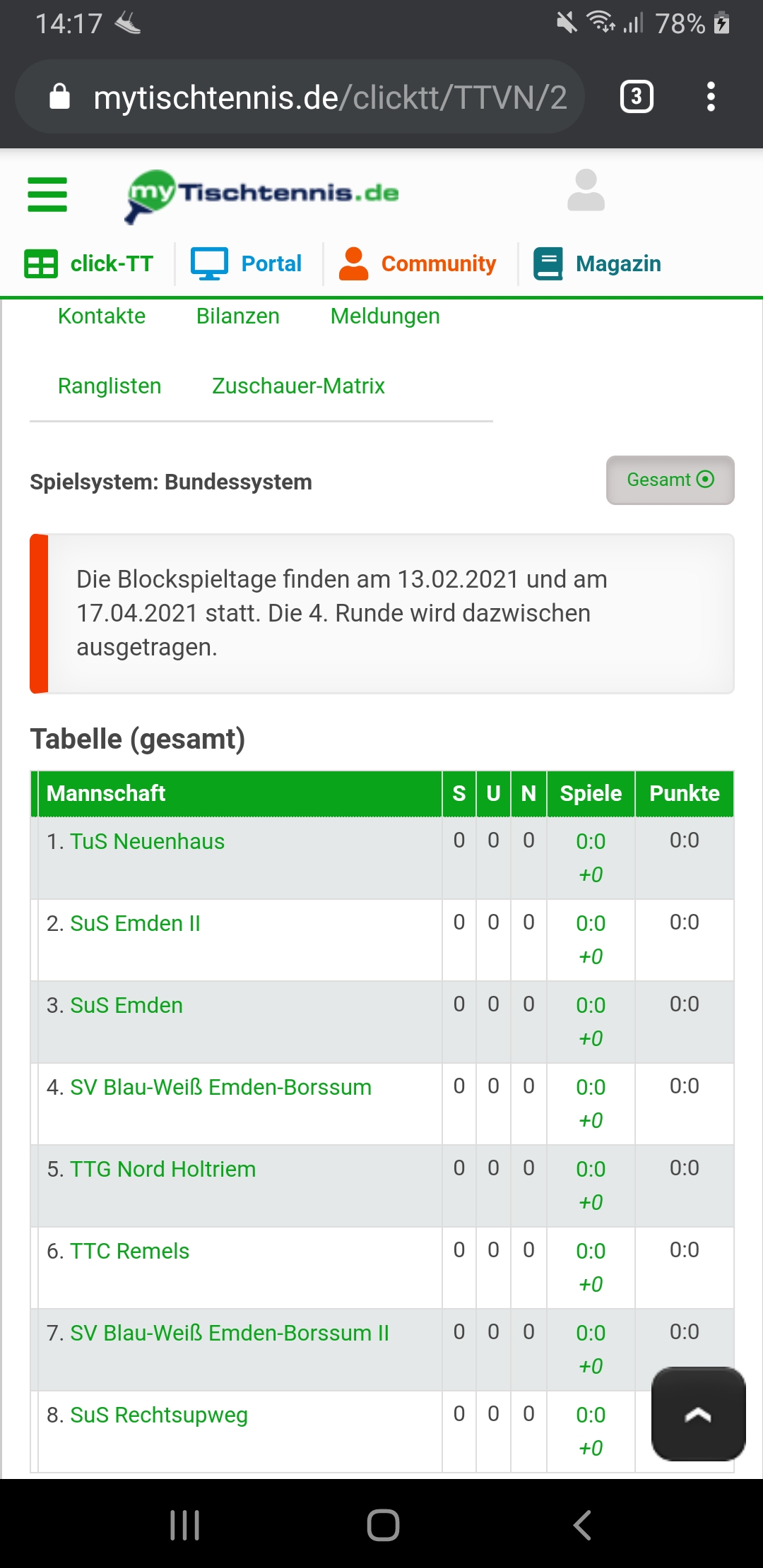 Das schöne bei der Seniorenlandesliga ist, dass dort 8 Teams in einer Staffel spielen und man bereits jetzt weiß, wann man gegen sechs von den anderen sieben Teams spielt. Am 13.02. ist Spieltag 1, am 17.04. ist Spieltag 2. Irgendwann dazwischen wird dann das siebte Spiel ausgetragen.
