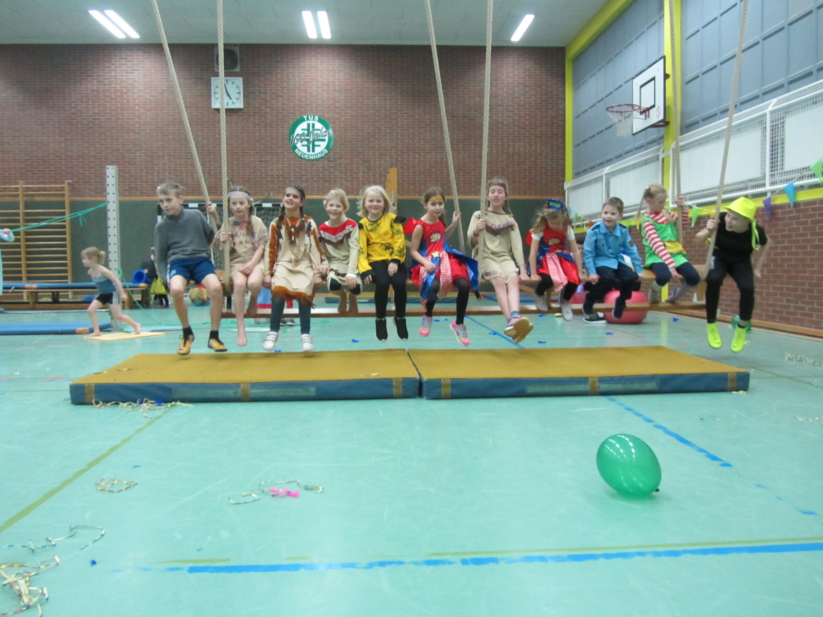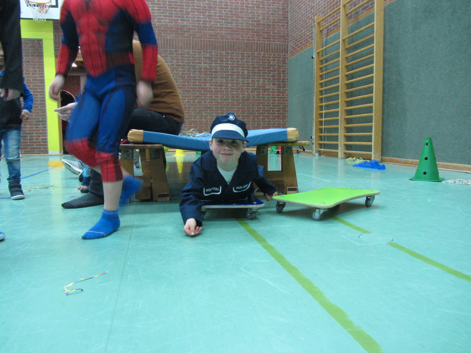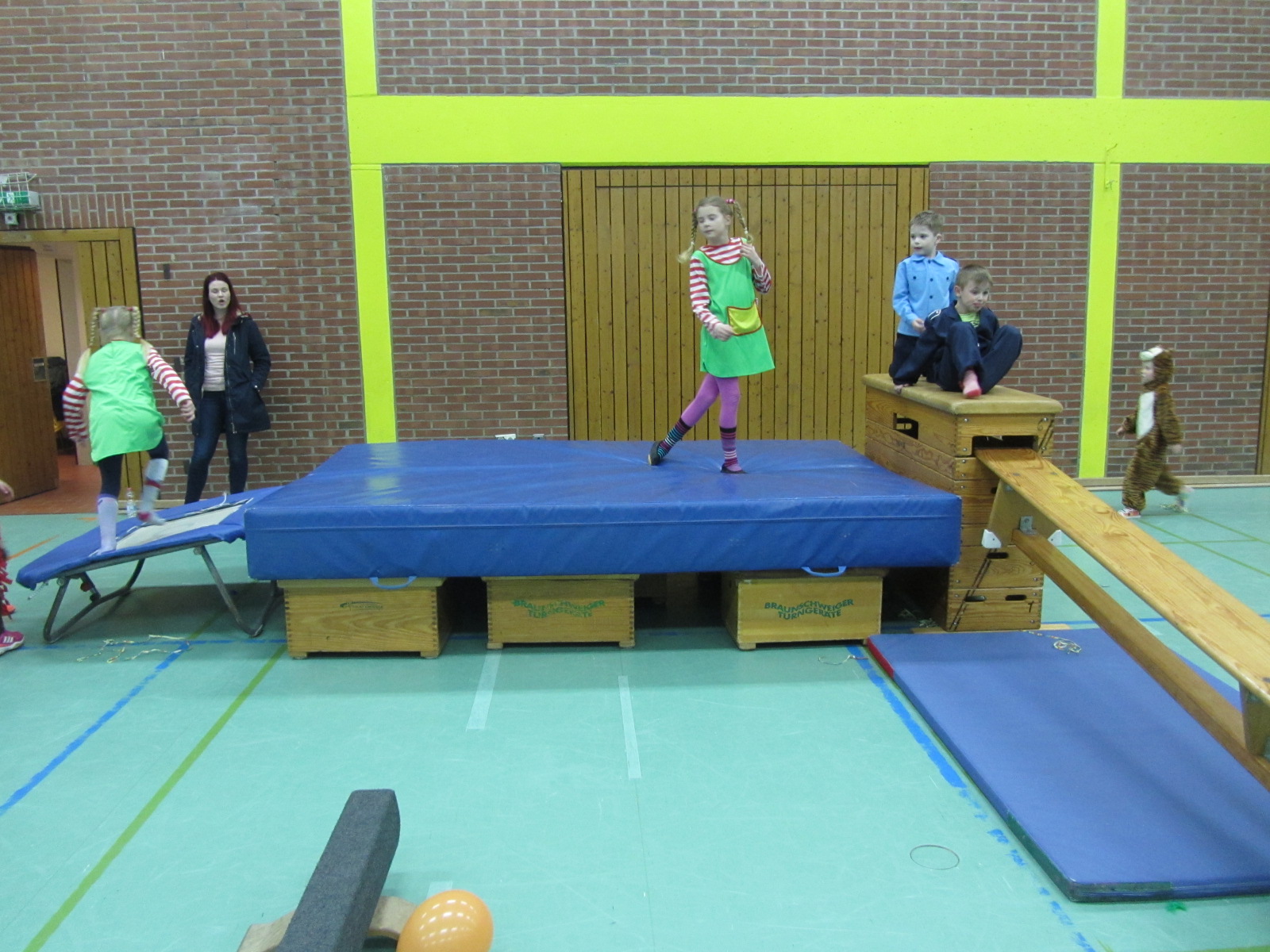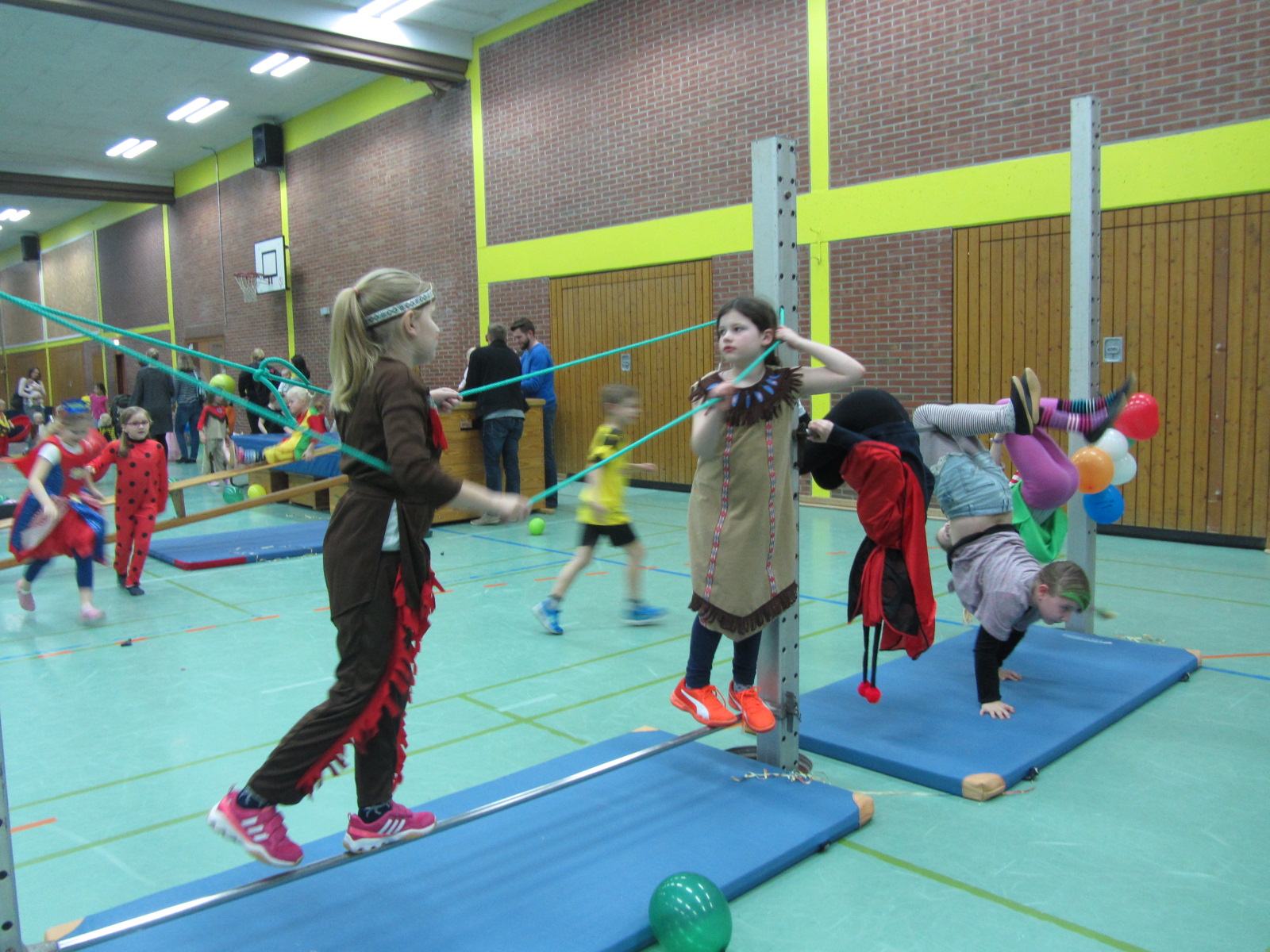 Mit ca. 150 Kindern fand an diesem Dienstag wieder das traditionelle Karnevalsturnen statt. Die Hermann-Lankhorst-Turnhalle war bunt geschmückt mit vielen verschiedenen Aufbauten. Die verkleideten Kinder waren mit Freude am Klettern, Spielen, Springen und Toben.