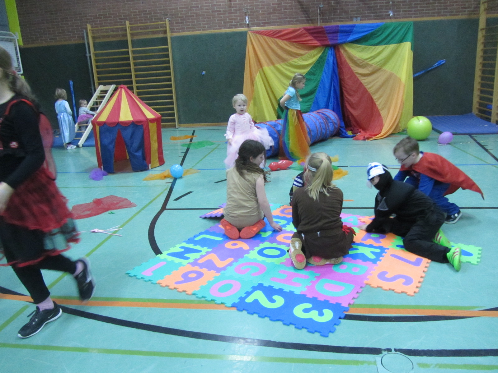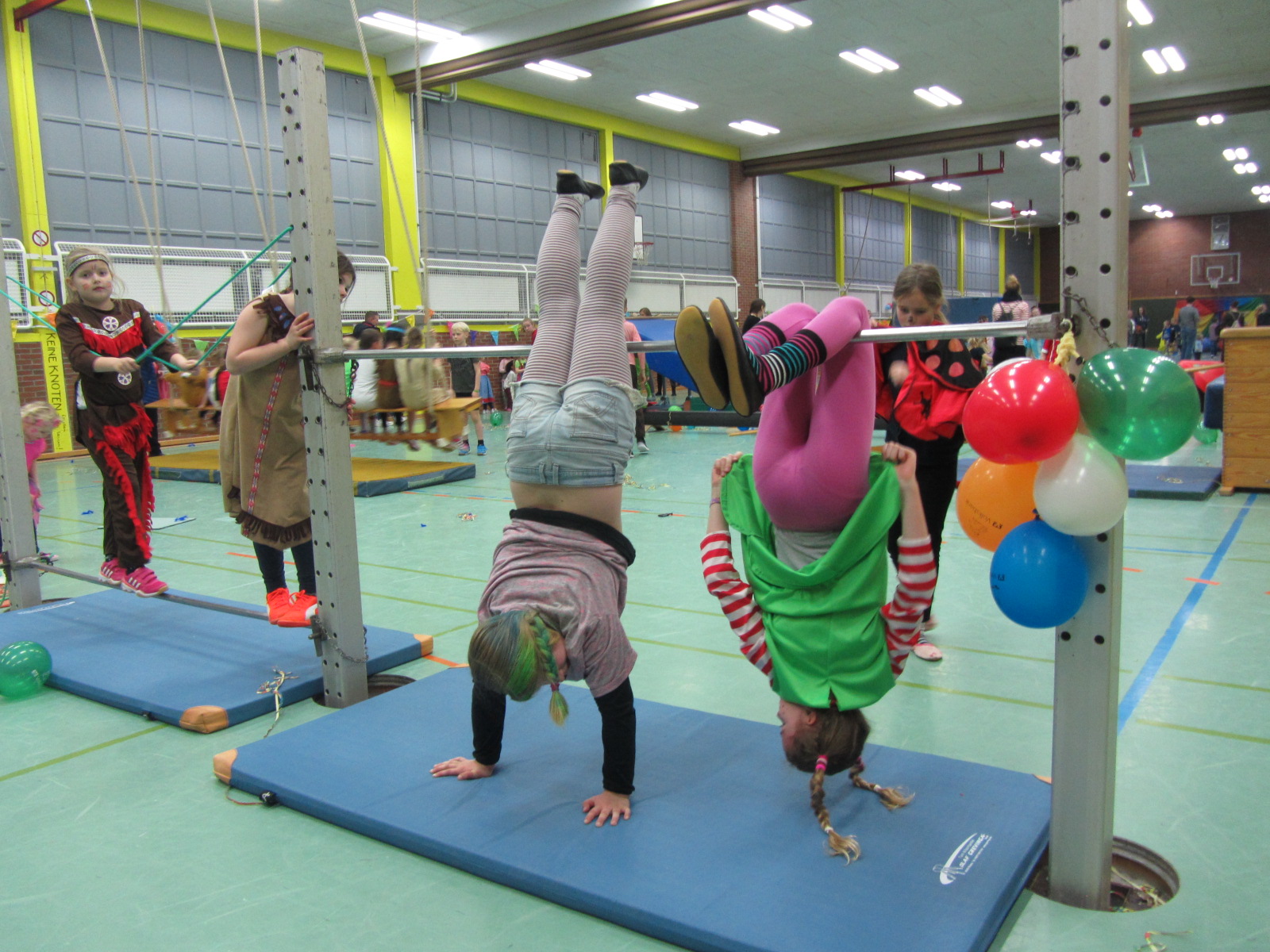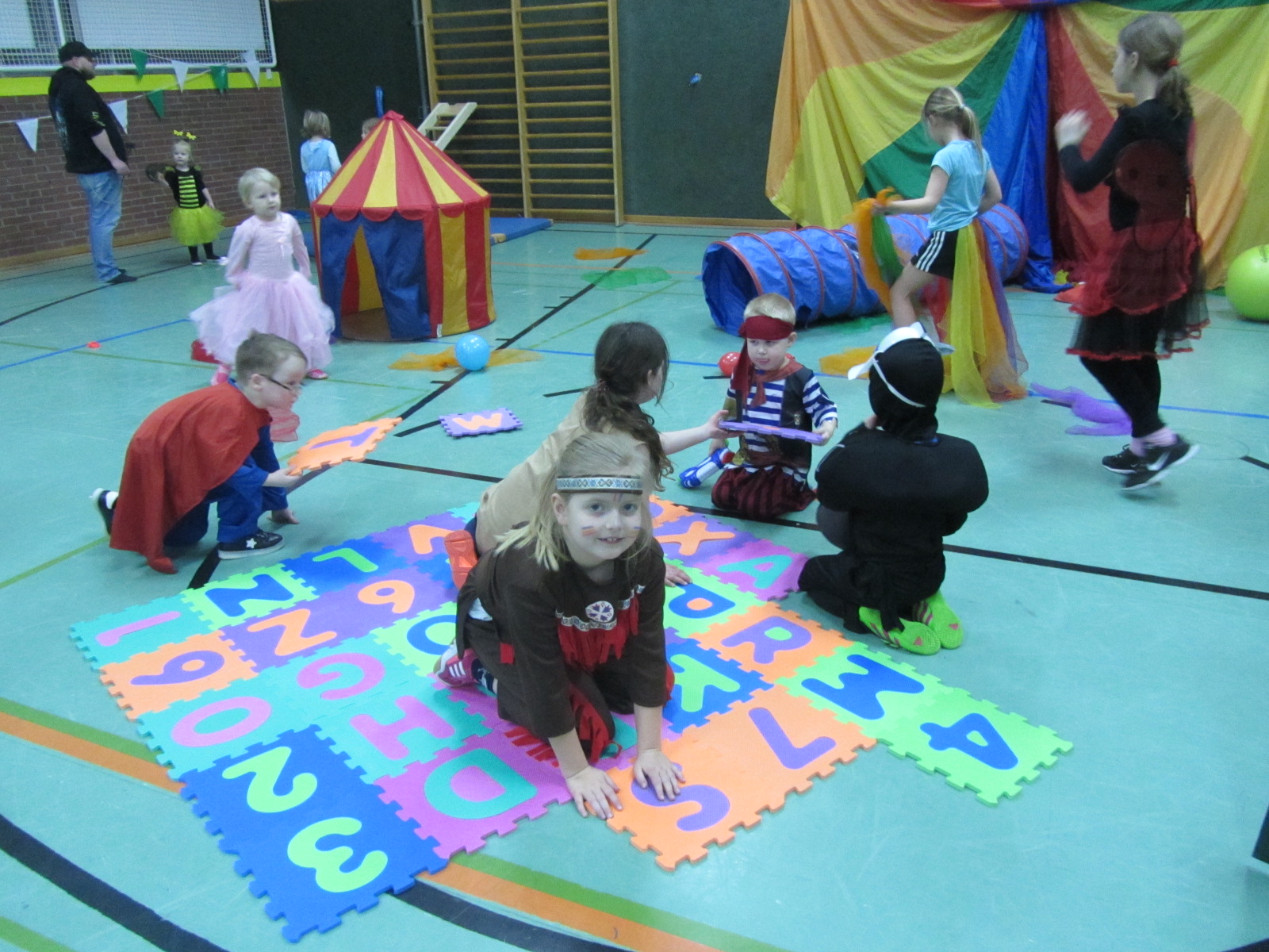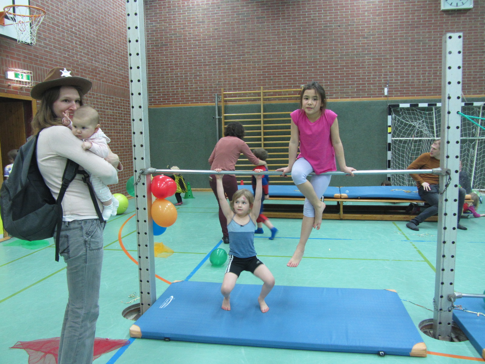 Mit ca. 150 Kindern fand an diesem Dienstag wieder das traditionelle Karnevalsturnen statt. Die Hermann-Lankhorst-Turnhalle war bunt geschmückt mit vielen verschiedenen Aufbauten. Die verkleideten Kinder waren mit Freude am Klettern, Spielen, Springen und Toben.
