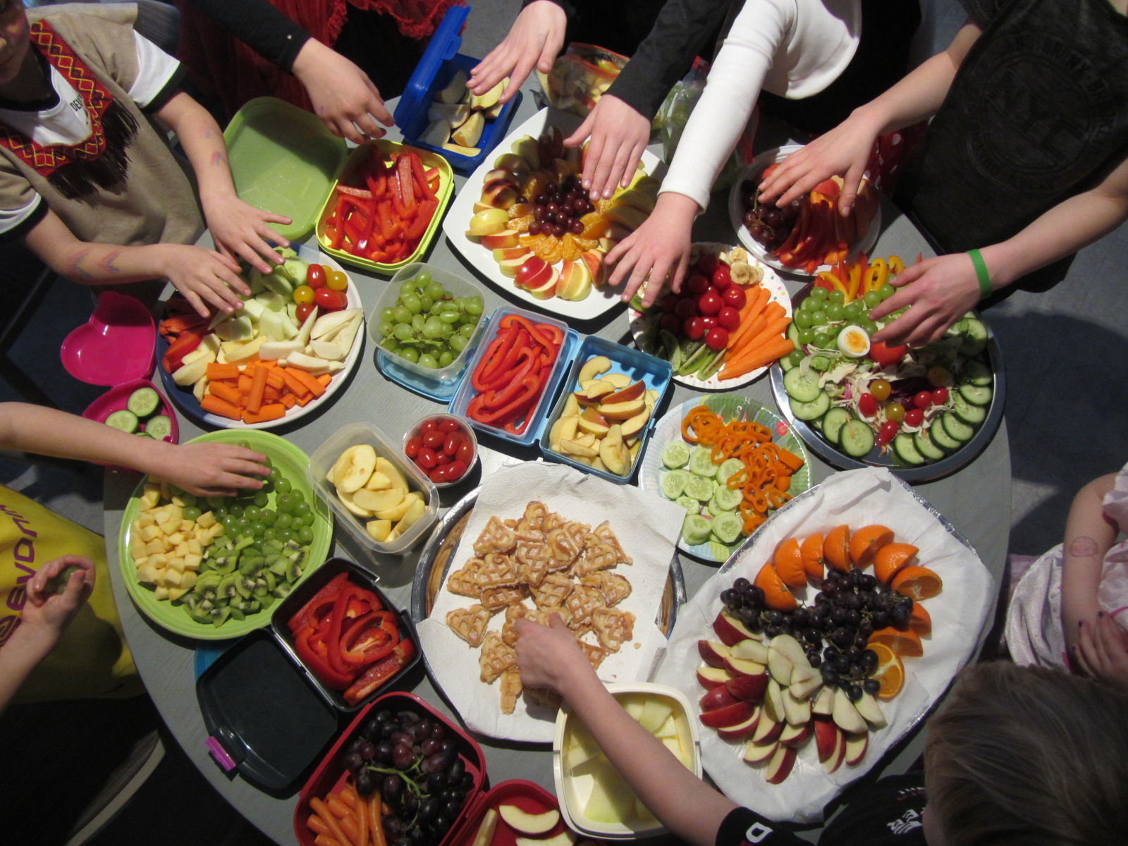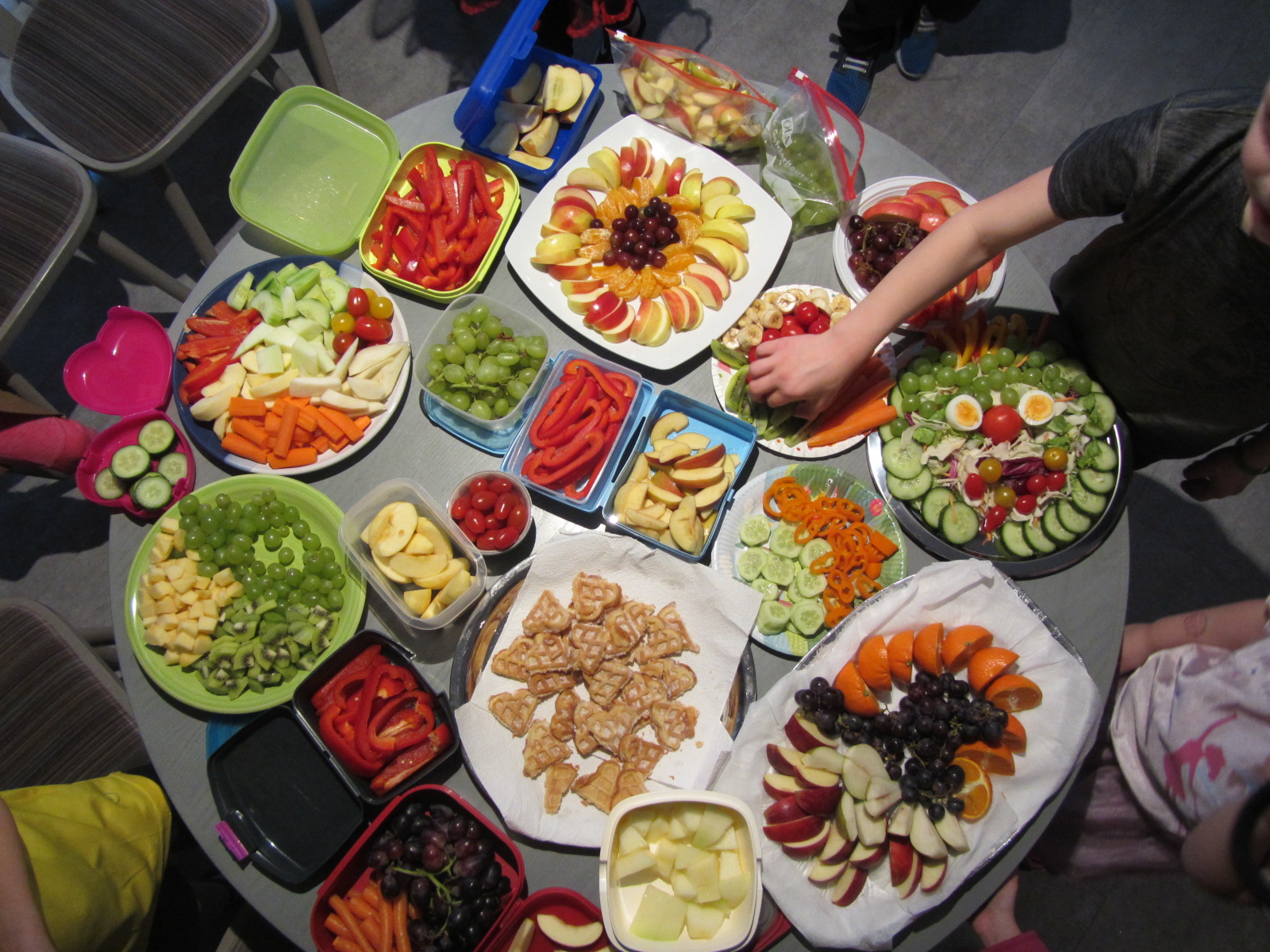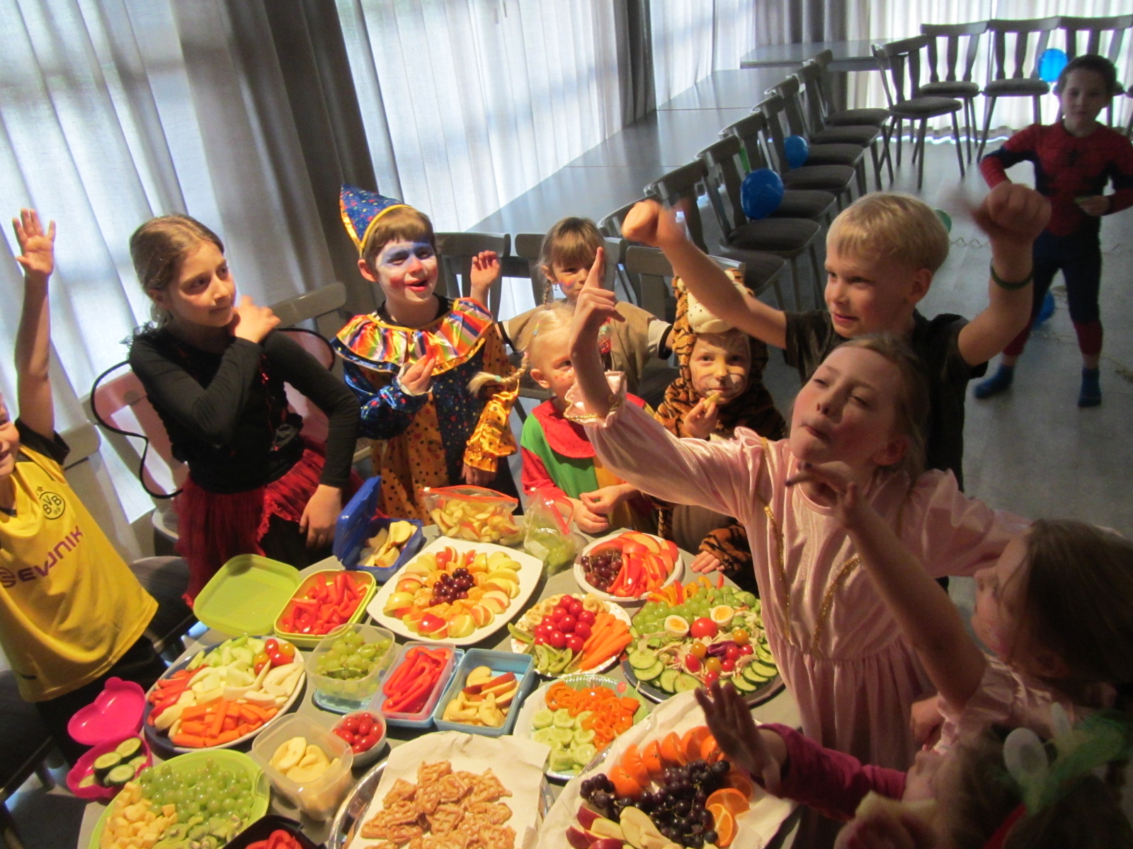 Zur Pausenstärkung haben zahlreiche Eltern tolle und bunte Obst- und Gemüseteller mitgebracht. Auch der TuS stellte frische Getränke, Plätzchen und Knabbereien zur Verfügung.