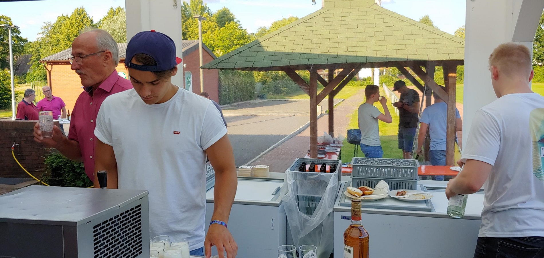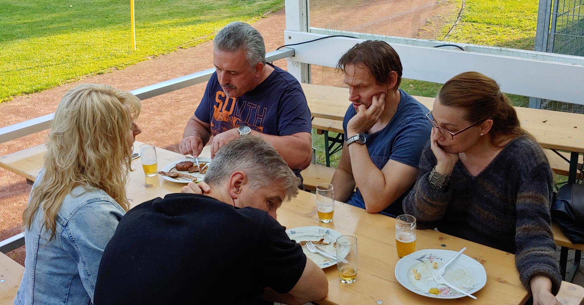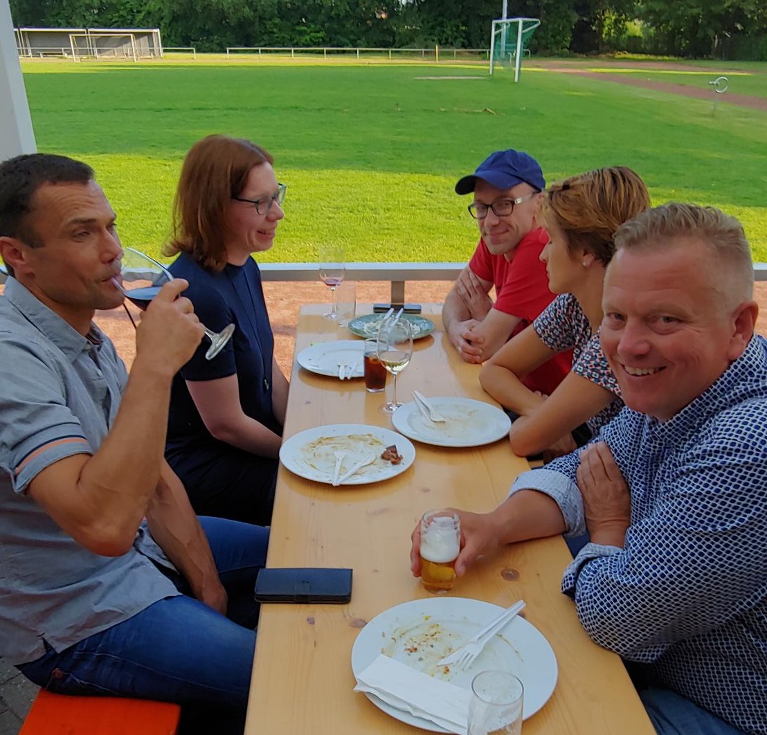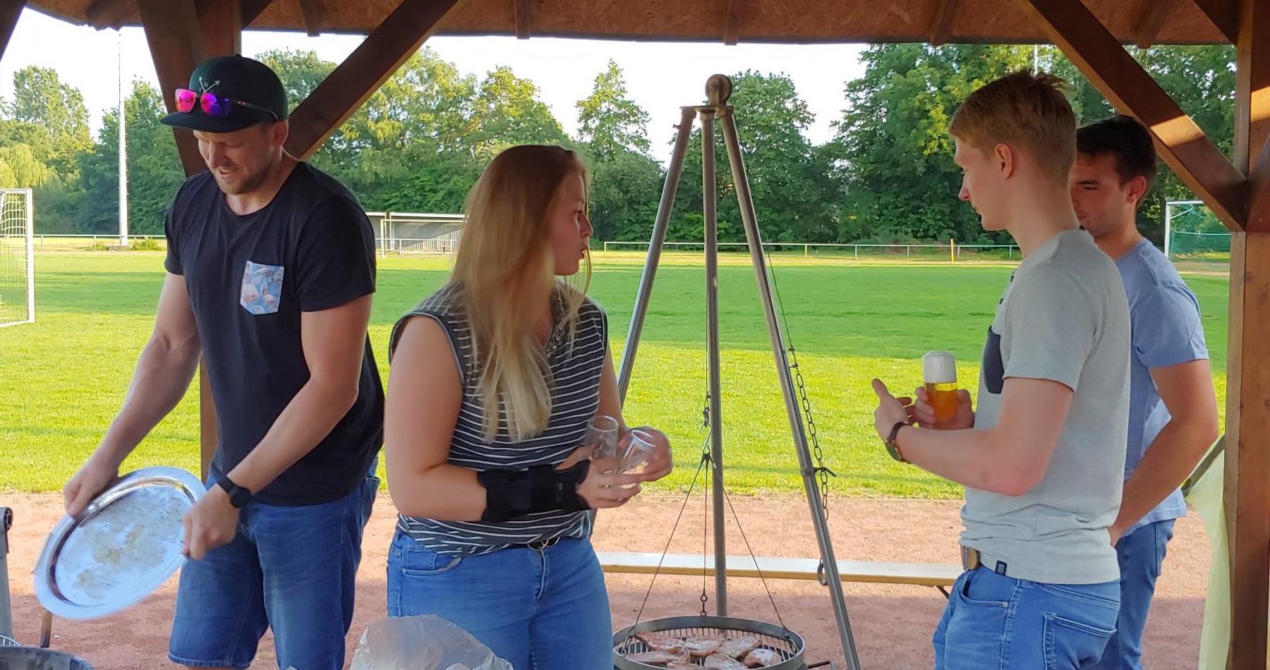 Jung und Alt kommen zusammen, lernen sich kennen und haben einen schönen gemeinsamen Abend. Bei diversen Getränken und Gegrilltem sowie selbstgemachten Salaten war für das kulinarische Wohl gesorgt, so dass ein lustiger und toller Abend seinen Lauf nehmen konnte. Vertreter der 1. Herren der SG hatten die Theke und den Grill voll im Griff und sorgten so dafür, dass eigentlich jeder sowohl beim Essen, als auch beim Trinken auf seine Kosten kam.